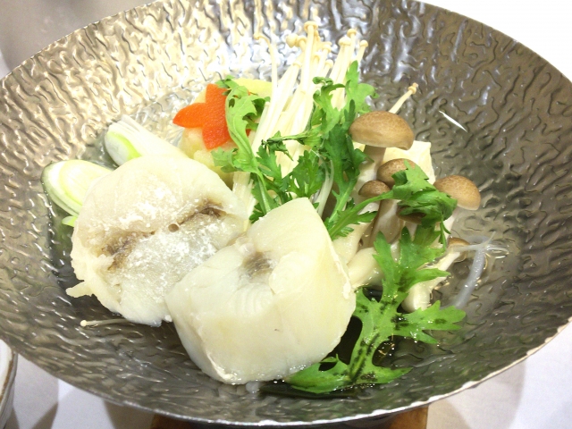 湯気の向こうに揺れるのは、旬の野菜と共に炊きあげるふぐちり。柑橘の香りがほのかに立ち上るポン酢と合わせると、ふぐの豊かな風味が一層引き立ちます。